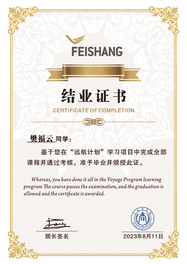 飞尚商学院“远航打算”进修名目美满竣事