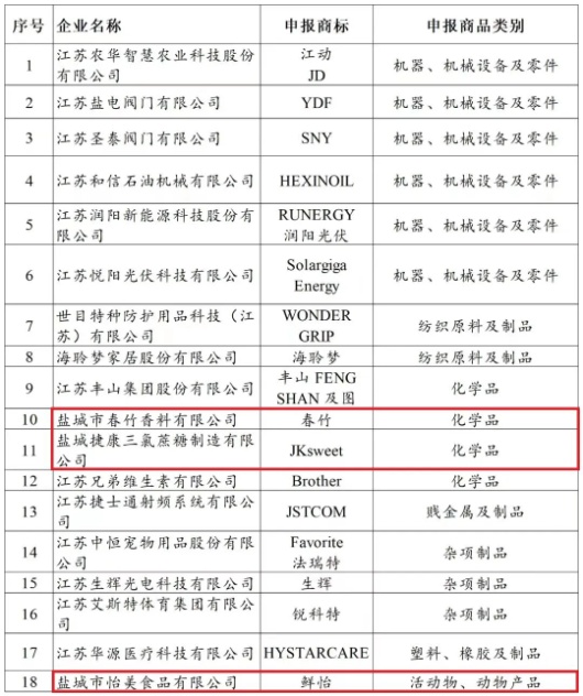 克日,江苏省商务厅宣布2023—2025年度江苏省重点培养和成长的国际着名品牌名单,在盐城市获牌的18家企业中,射阳县仅3家,此中盐城捷康三氯蔗糖制作无限公司作为射阳标杆企业上榜。